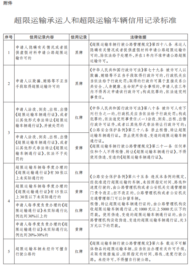 对超限运输信用记录进行情形分类,实行亮牌制度,按照性质和情节,分别亮黑牌、红牌和黄牌: